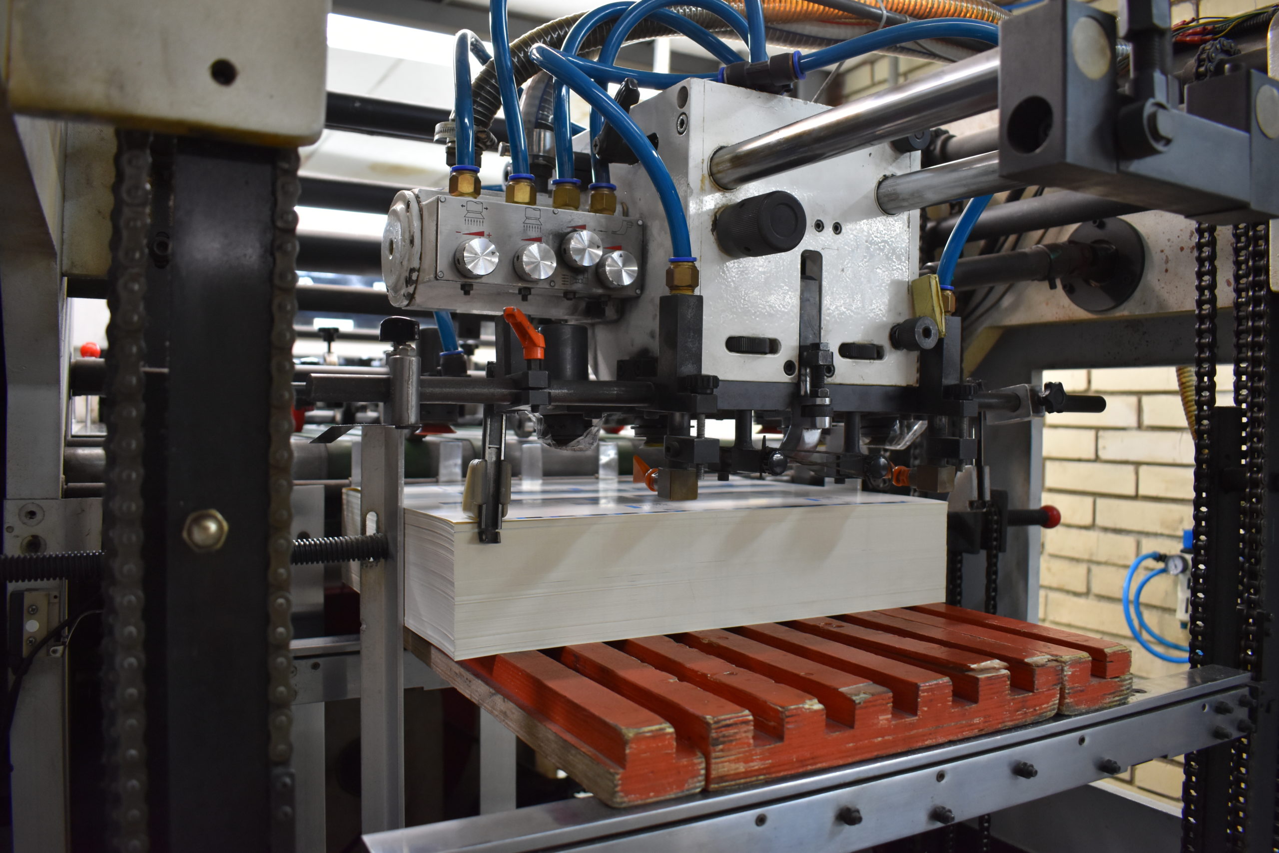 Sección dotada con un tren de pegado de plegadizas con pegues finales lineales y fondo automático en frío y caliente, este tren posee dispositivos electrónicos para el control de mezclas. Contamos con equipos complementarios como plegadora, perforadora, cosedora, etc. Además de personal calificado para labores manuales y de revisión. La entrega de los productos terminados se realiza en vehículos propios y aptos para la actividad.